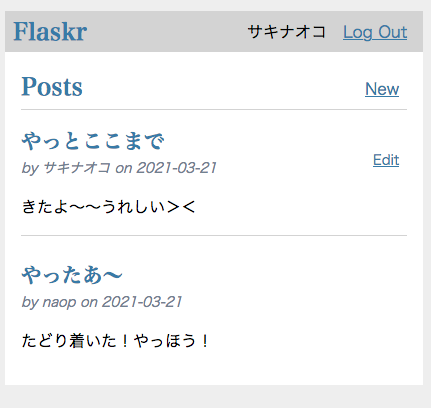 あとは書いてある通りにハイハイと進めれば、本番環境のWSGIサーバとかいうWaitressを使いアプリを表示できます!!