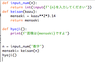 ただの円の面積を求めるのにdefをふんだんに使って書いてみました。