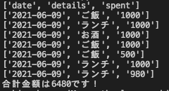 ずらららーっと支出の詳細が出て、合計も出ます!