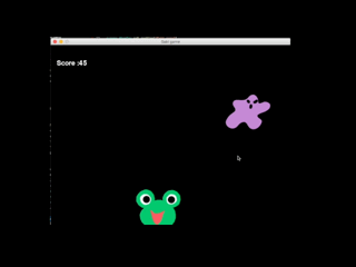 かえるちゃんが左右に動いてスペースキーを押すと、左右に動きながら降りてくる敵にハート攻撃します♡*^o^*(動きはgifのよりもっと早いです。)