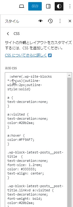 スタイル横に三点マークあるのでクリックすると「追加CSS」がある