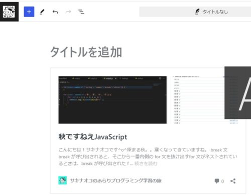 いやあ、なんだかプログラミング学習の記事を書いて、総合案内所(https://sakinaoko.com/)へブログカードを貼ろうとしたんですけどね、貼れなくて文字のリンクになっちゃうんですよね。
