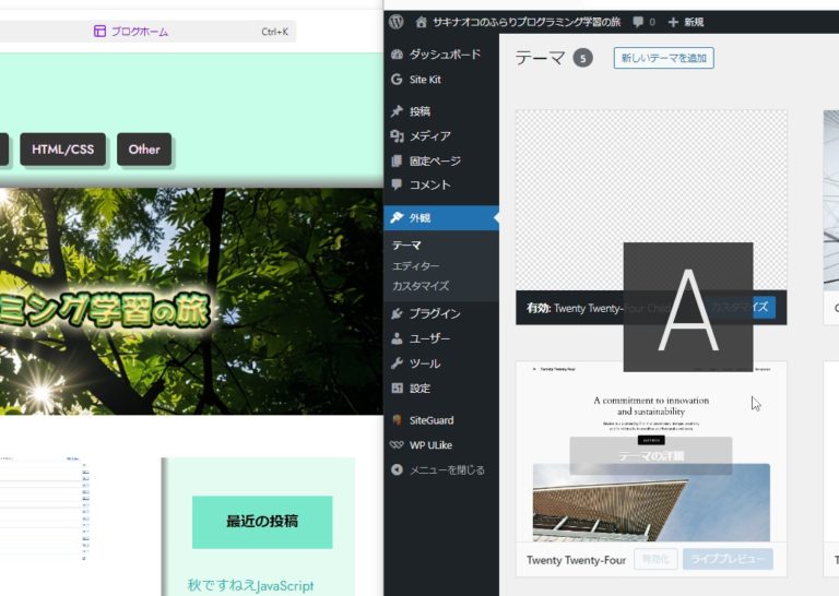 こんにちは!サキナオコです^o^今日も良いお天気ですね! いやあ、なんだかプログラミング学習の記事を書いて、総合案内所(https://sakinaoko.com/)へブログカードを貼ろうとしたんですけどね、貼れなくて文 … 続きを読む なんかブログデザイン変えたくなり
