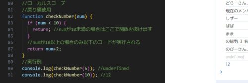 関数を抜け出すためだけ return 文を使うときは return のみ(戻り値は undefined)