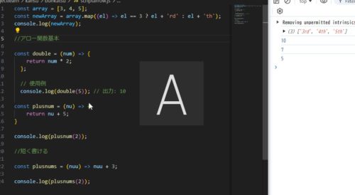 このようにアロー関数を使うことで、簡潔な構文で関数を定義でき、コードがより読みやすくなります。